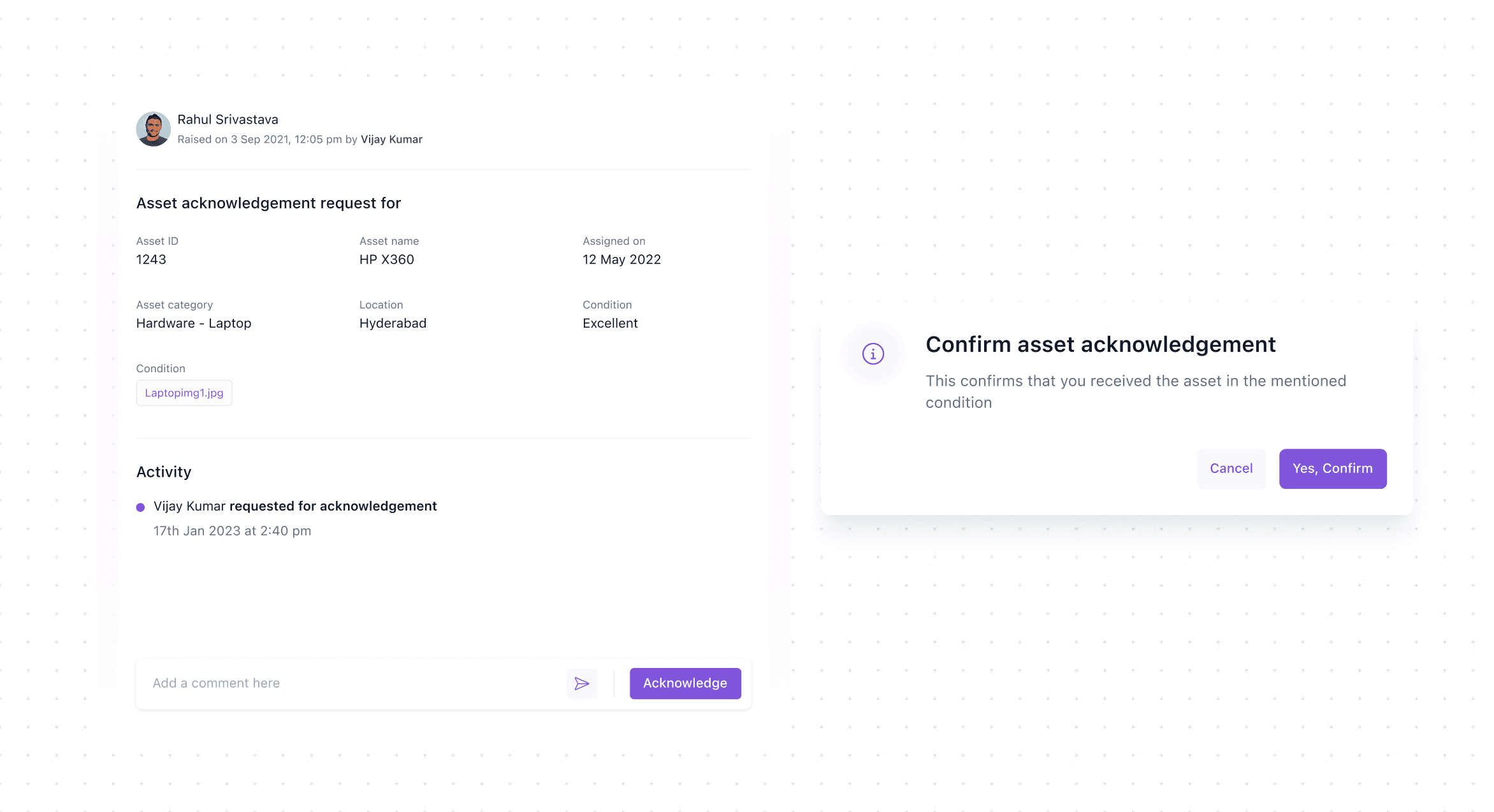 How might we make the experience of asset acknowledgement seamless?